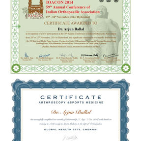 Step into the Awards & Recognition realm of Dr. Arjun Ballal's illustrious career, where excellence and dedication converge to earn prestigious accolades. Delve into a showcase of honors that highlight Dr. Ballal's outstanding contributions to orthopaedic surgery, including distinctions such as the Dr. P. Tejeshwar Rao Gold Medal for the best postgraduate paper. This page serves as a testament to his commitment to advancing medical knowledge and acknowledges the recognition he has garnered for his exceptional achievements in research, academia, and clinical practice.